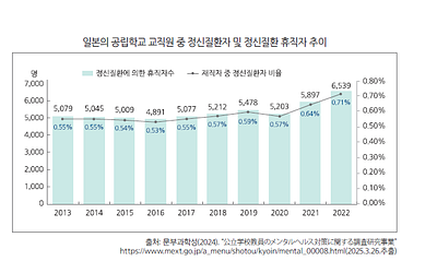 “개인의 문제”가 아니라, 현장이 보내는 구조적 신호 일본에서 공립학교 교원 중 **정신질환(우울증 등)**으로 90일 이상 병가·휴직에 들어간 사람이 7,119명으로 집계...